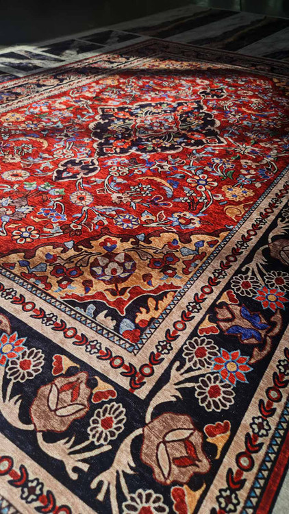 فرشینه طرح سنتی کد H161 با ضمانت کیفیت، قابل شستشوی راحت، بدون سُر روی زمین