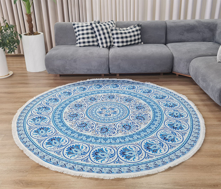 فرشینه گِرد هال و پذیرایی کد D123 رویه مخمل درجه یک استپ دار بدون سُر