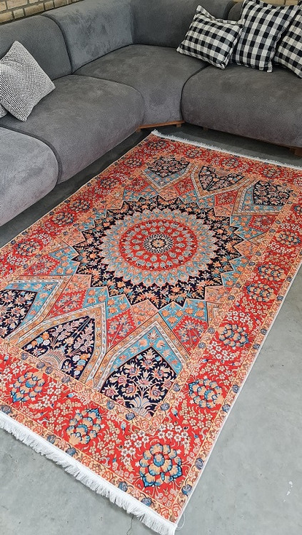فرشینه طرح فرش ابریشمی کد A025 مخمل تُرک زیره استُپ دار، نرم و لطیف