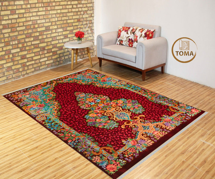 فرشینه طرح فرش ابریشمی کد A032 مخمل تُرک زیره استُپ دار، نرم و لطیف