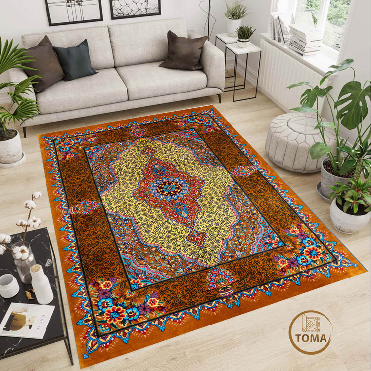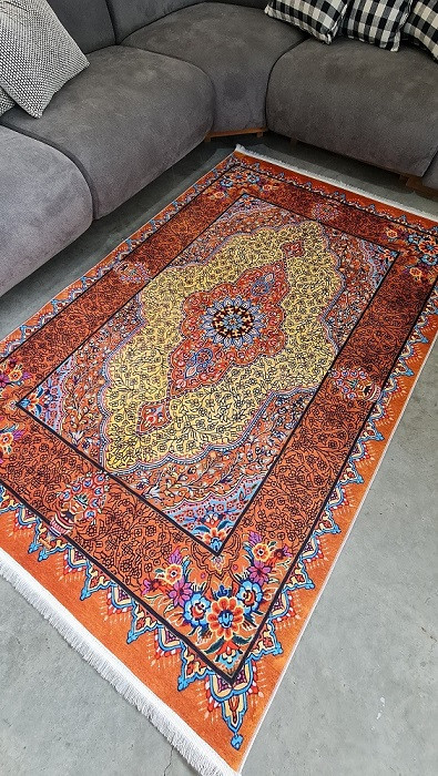 فرشینه طرح فرش ابریشم کد A062 قابل شستشوی راحت با ضمانت یکساله کیفیت و رنگ